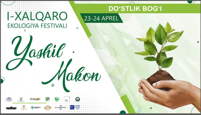 I ekologik festival – “Yashil Makon” – keng ko‘lamli ekologik-maʼrifiy loyiha bo‘lib, uning ruhi va falsafasi tabiatni sanʼat orqali asrab-avaylashga qaratilgan. Loyihaning asosiy g‘oyasi – ekologik tanlovlar, mahorat darslari, fikr almashish va ko‘rgazmalar uchun yagona maydon yaratish. Festivaldan ko‘zlangan maqsad – bolalar va yoshlar o‘rtasida ekologik madaniyatni shakllantirish, ekoturizmni rivojlantirish.